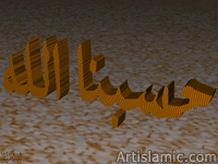 Click the button above for seeing computer generated 3D Islamic calligraphy works containing the name of ALLAH (God) in various calligraphy styles with various textures and backgrounds.